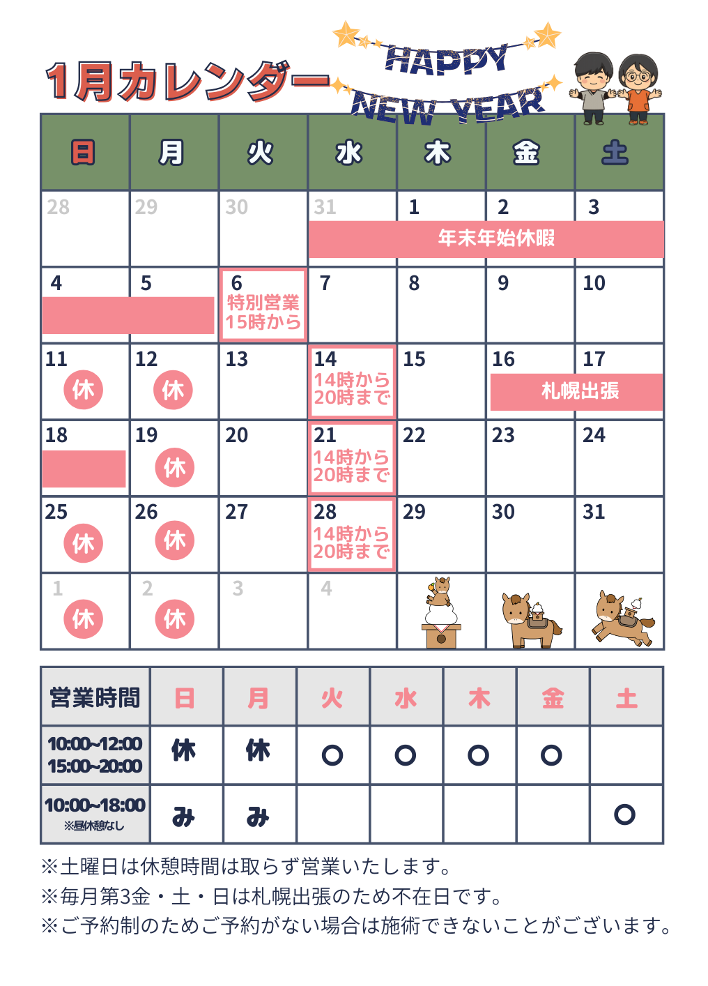※ 第3金・土・日曜日は札幌出張の為、不在日とさせて頂きます。